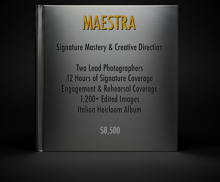 Your experience extends beyond the wedding itself. Each collection includes the creation of a handcrafted GraphiStudio Italian heirloom album, meticulously designed to preserve your story as a timeless work of art.